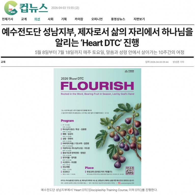 [기사] 예수전도단 성남지부, 제자로서 삶의 자리에서 하나님을 알리는 ‘Heart DTC’ 진행(크리스챤연합신문 컵뉴스)