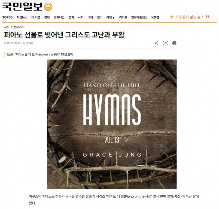 뮤직타임 [기사] 피아노 선율로 빚어낸 그리스도 고난과 부활(국민일보)